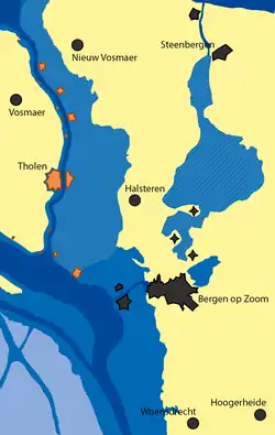 Afin d'améliorer la défense, les polders nouvellement établis à l'ouest de Steenbergen et Halsteren ont été inondés entre 1583 et 1585, localisés à l'est de l'Eendracht au nom des États généraux et de Guillaume d'Orange. Les digues des terres du Nord près de Berg-op-Zoom ont également été percées sous la menace espagnole. Après que celles-ci aient déjà été endommagées par les tempêtes successives de 1530 (celle de la Saint-Félix), 1532 (celle de la Toussaint), 1552 (celle de la Saint-Pons (nl)) et 1570 (celle de la Toussaint), cela signifiait la fin définitive de ces polders. Et les terrains ont été inondés régulièrement au fil des marées, et en raison de leur caractère inhospitalier, les attaques espagnoles ont toujours été repoussées, les soldats se noyant souvent dans les zones inondées à marée haute ou se retrouvant piégés dans la boue des marais à marée basse, ce qui en faisait des cibles faciles pour les tirs de mousquets.