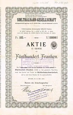 La compagnie de la Sihltalbahn est chargée dès 1932 de l'exploitation de la ligne de l'Uetliberg qui appartient alors à la ville de Zurich. Les deux compagnies fusionnent au 1er janvier 1973 pour former la Sihltal Zürich Uetliberg Bahn (SZU).