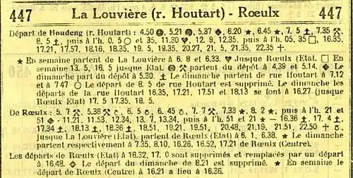 Tableaux[note 1] : 447 (1931), numéro partagé avec la ligne 447A Anderlues - Strépy-Bracquegnies.