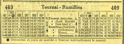 - ↑ Horaire des trains du au , Société nationale des chemins de fer belges (SNCB) (lire en ligne sur le Grenier Ferroviaire)
