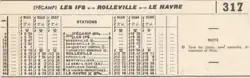 En semaine et les samedis, cinq allers-retours atteignaient Rolleville via Épouville, trois les dimanches et jours fériés.