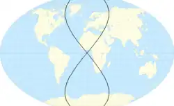 Il existe deux lignes distinctes reliant des points de latitude et longitude égales. Les deux lignes relient le pôle Nord au pôle Sud en traversant l'équateur au niveau de son intersection avec le méridien de Greenwich ; elles forment un « huit » à la surface de la Terre.