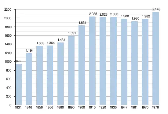 - Sources:INS, Rem:1831 jusqu'en 1970=recensements, 1976= nombre d'habitants au 31 décembre