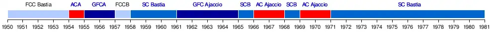 • De 1941 à 1943 et de 1945 à 1959 : Champion de la Division d'Honneur de Corse.