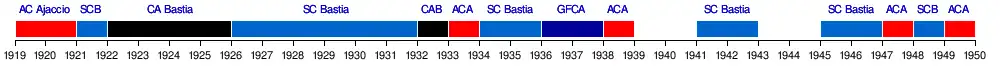 • De 1919 à 1939 : Champion de la Division d'Honneur de Corse.