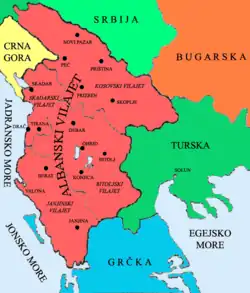 En 1878, à l'issue de la guerre russo-turque, le traité de San Stefano () cède aux nouveaux États balkaniques (Grèce, Monténégro, Serbie, Bulgarie), une grande partie des terres à majorité ou forte minorité albanaise.