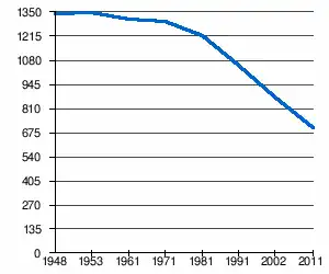 | 1 338 | 1 347 | 1 313 | 1 305 | 1 220 | 1 052 | 874[2] | 703[1] |