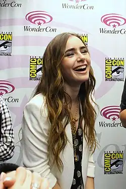Lily Collins est une actrice, mannequin, écrivaine et productrice britannico-américaine[1],[2], née le à Guildford, dans le comté de Surrey, en Angleterre.
