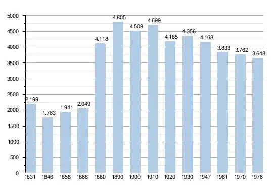 Les chiffres des années 1831 à 1970 tiennent compte des chiffres des anciennes communes fusionnées.