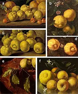 Elle est attestée dans le catalogue des Médicis, dans un polyptyque de Gand de van Eyck et de nombreuses natures mortes italiennes et espagnoles (XVIe au XVIIIe). La phylogénie montre une ascendance Citrus maxima / C. reticulata plus élevé dans les citrons communs que dans les limettes et une ascendance Citrus maxima / C. medica plus faible que chez le citron Meyer[22].