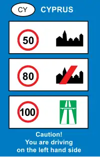 Vitesses maximales autorisées en république de Chypre (abréviation officielle: CY - pour "Cyprus", nom anglais du pays):