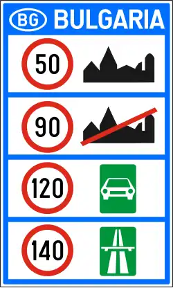 Vitesses maximales autorisées en Bulgarie (abréviation officielle: BG):