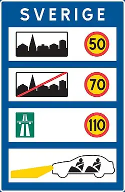Vitesses maximales autorisées en Suède (abréviation officielle : S) :