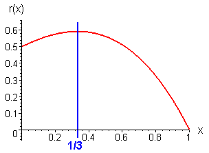 Le maximum[2] est atteint pour x=1/3, et alors r=16/27. D'où la limite de Betz :