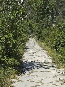 Dans la nécropole de l'Est, on a retrouvé un tombeau datant du IVe siècle av. J.-C., décoré de colonnes ioniques qui ont été taillées dans la roche. Il existe aussi d'autres tombes à proximité, ornées de gravures représentant des scènes diverses.