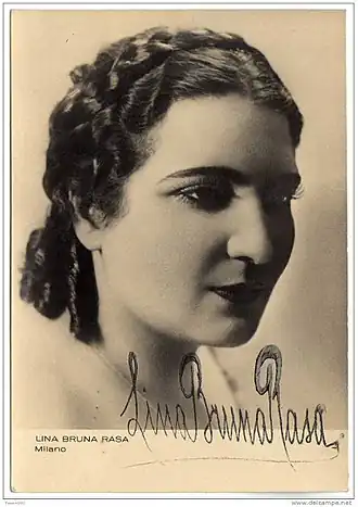 Lina Bruna Rasa est née à Padoue et commence ses études musicales à l'âge de 14 ans, elle étudie avec Guido Palumbo et Italiano Tabarin à Padoue, et plus tard à Milan avec Manlio Bavagnoli. Son apparition en concert en 1925 à La Fenice où elle chante l'aria, Suicidio de La Gioconda, créé une sensation. La même année, à l'âge de 18 ans, elle fait ses débuts à l'opéra en interprétant le rôle d'Elena dans Mefistofele de Arrigo Boito au Teatro Politeama à Gênes. Elle fait ses débuts au Teatro Regio de Turin dans le même rôle, le et engagée par Toscanini pour chanter Elena pour l'ouverture de la saison 1927 à La Scala de milan où elle a fait ses débuts le . Elle chante dans de nombreuses représentations notables, y compris la première mondiale de Nerone de Pietro Mascagni, le , à La Scala de Milan[1], dans La Sagredo de Franco Vittadini (en), dans la première italienne de Le Conte du Tsar Saltan de Nikolaï Rimski-Korsakov et quelques-unes d'autres premières, Sly d'Ermanno Wolf-Ferrari, La Maddalena de Vincenzo Michetti , et La campana sommersa d'Ottorino Respighi. Elle a chanté Mathilde pour La Scala, à la célébration du 100e anniversaire de Guillaume Tell de Rossini.