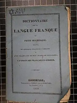 - ↑ Dictionnaire de la langue franque ou Petit mauresque