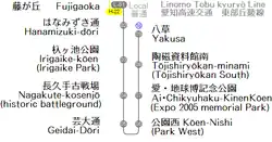 | L09 | Yakusa[3] | 八草 | 8,9 | Aichi Loop Railway : Aichi Loop |