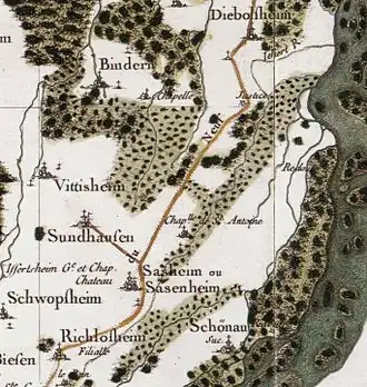 Après l’abandon du village au XVe siècle, il subsiste sur le site une église ou une chapelle dédiée à saint Antoine de Padoue. L’évêque suffragant de Strasbourg Arath note en l’état de délabrement de l’édifice, en interdit l’accès et ordonne sa démolition. Les messes qui y sont fondées sont transférées dans l’église de Saasenheim et ses matériaux réemployés dans la reconstruction de l’église de Schœnau[11].