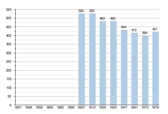 - Sources:INS, Rem:1831 jusqu'en 1970=recensements, 1976= nombre d'habitants au 31 décembre