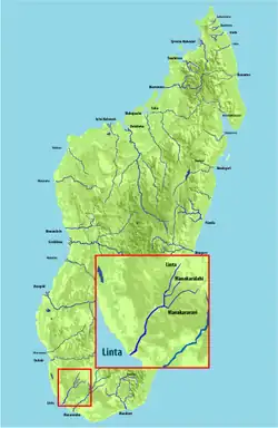 Le Linta fait partie, aussi par convention, des bassins versants méridionaux de Madagascar, et c'est le premier plus important à l'ouest de ce découpage. Le bassin versant voisin à l'est est celui du Menarandra.