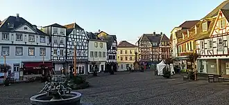 À cause de ses nombreuses maisons à pans de bois colorées, la ville est fréquemment désignée comme «Bunte Stadt am Rhein» (ville colorée du Rhin).