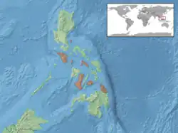 Cette espèce est endémique des Philippines. Elle se rencontre sur les îles de Negros, de Masbate, de Mindoro, de Tablas, de Polillo, de Bohol et du Nord-Est de Mindanao[2].