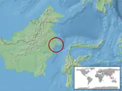 Cette espèce est endémique de l'île de Miang au Kalimantan oriental sur l'île de Bornéo en Indonésie[1].