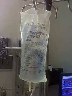 Cette solution est composée de chlorure de sodium, de potassium et de calcium. Un organe animal plongé dans ce liquide reste en vie. Sydney Ringer a été le premier scientifique à l'avoir utilisé. La soluté de Ringer a été inventée dans les années 1880 et du lactate a été ajouté dans les années 1930[1].