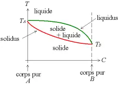 où désigne la température du liquidus, la pression et la composition du matériau. On dit parfois simplement liquidus au lieu de température du liquidus.