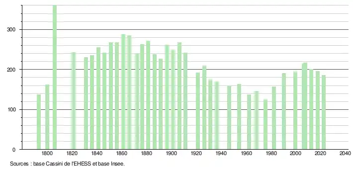 - ↑ Fiches Insee - Populations de référence de la commune pour les années 2006, 2007, 2008, 2009, 2010, 2011, 2012, 2013, 2014, 2015, 2016, 2017, 2018, 2019, 2020, 2021 et 2022.
