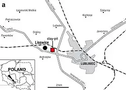 Les fossiles de Lisowicia ont été découverts dans la carrière d'argile de Lipie Śląskie à Lisowice, un village du sud de la Pologne près de la ville de Lubliniec, en Silésie. Les lits fossilifères de Lipie Śląskie se composent principalement de mudstones verts. L'âge de la carrière d'argile de Lipie Śląskie a été difficile à déterminer, avec différentes méthodes biostratigraphiques de datation fournissant des résultats variables. Le site a généralement été daté du Rhétien, ce qui ferait de Lisowicia l'un des dicynodontes plus récent au monde. Cependant, les paléontologues Grzegorz Racki et Spencer Lucas ont affirmé que le site était plus ancien et daté du stade Norien moyen sur la base de la biostratigraphie de grands vertébrés, dont Lisowicia. Ils ont plutôt suggéré que Lisowicia n'était pas significativement plus jeune que les autres dicynodontes et avait le même âge que les derniers genres connus ailleurs dans le monde[3].