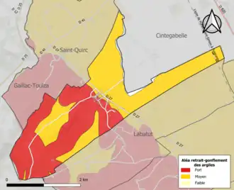 Les mouvements de terrains susceptibles de se produire sur la commune sont soit des glissements de terrains soit des mouvements liés au retrait-gonflement des argiles. Près de 50 % de la superficie du département est concernée par l'aléa retrait-gonflement des argiles, dont la commune de Lissac[34]. L'inventaire national des cavités souterraines permet par ailleurs de localiser celles situées sur la commune[35].