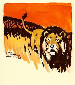 Les œuvres de Vaalswaer (nom de plume d'Izak van Heerden[57]), J. F. Cillié, Johannes F.W. Grosskopf, Hans Anton Aschenborn (1888-1931) et d'autres annoncent le genre animalier, qui devient un art à part entière dans l'œuvre de Sangiro, le nom donné par les Cafres à Andries Albertus Pienaar (1894-1979). À l'âge de onze ans, celui-ci émigre en Afrique orientale allemande avec sa famille. Les privations subies pendant le Trek et la mort des membres de sa famille restent gravées dans sa mémoire. Lui-même grandit comme un solitaire parmi les animaux sauvages de la grandiose nature tropicale autour du Kilimandjaro. Là, il apprend à aimer les animaux sauvages, dont il témoigne dans Uit oerwoud en vlakte: sketse uit die Oos-Afrikaanse dierewêreld (De la forêt vierge et des plaines : croquis du monde animal de l'Afrique orientale, de 1921) ; grâce à cet ouvrage, il acquiert une célébrité mondiale. Après une observation attentive, il apporte une image strictement objective de la faune et essaie de représenter l'âme des animaux dans un langage souple et musical, sans artifice. Il traduit Die adelaar en ander Afrikaanse verhale (L'Aigle et autres contes afrikaans) d'Aschenborn, de 1925) et relate l'histoire de ses excursions et de ses parties de chasse en Afrique de l'Est dans Op safari (En safari, de 1925) ; il écrit une série d'articles brillants, rassemblés sous le titre Trekvoëls (Les Oiseaux migrateurs, de 1936) et publie Simba (Simba, de 1944)[58].