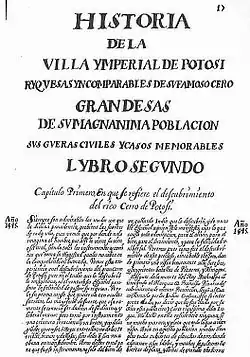 - ↑ Historia de la Villa Imperial de Potosí