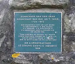 Donnchadh Bàn Mac an t-Saoir (connu sous le nom de Duncan Ban MacIntyre en anglais; – )[9] est l'un des poètes gaéliques les plus célèbres et a joué un rôle important durant l'âge d'or de la poésie gaélique dans l'Écosse du XVIIIe siècle. Il est surtout connu pour son poème Beinn Dorain; "Moladh Beinn Dòbhrain" ("éloge de Ben Doran"). La plupart de ses poèmes sont descriptifs et l'influence d'Alasdair MacMhaighstir Alasdair sur son œuvre est évidente. Bien que les soulèvements jacobites aient eu lieu de son vivant, ce fut son expérience de garde-chasse en Argyll et dans le Perthshire pour le compte du duc d'Argyll qui influença le plus sa poésie. Moladh Beinn Dòbhrain découle de cette période de sa vie. L'importance de la poésie imprégnée de nature de Duncan Bàn est telle qu'elle a été décrite, tout comme celle de MacMhaighstir Alasdair, comme étant "l'apogée de la poésie gaélique traitant de la nature"[10].