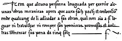 Item que alcuna personna lougada per exerci alcunas obras mecanicas apres que aura fach pacti et convention embe qualcung de li adiudar a sas obras, quel non aia a si loguar ni travailhar ni rompre sas premieras promessas et aultras conmencar sus pena de cinq solts.[9]