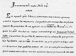 - ↑ En aquest present libre si comenson d'escrieure plusors causos dignos de memoria, lasquallos son avengudas en plusors regions et provinsos et en special en la cieutat de Marsilha, en laqual lo present tractat es extat comensat per mi Honorat de Valbella (1), cieutadan d'aquello et natiéu de La Cadiero, et per que jéu dit Valbella tot lo tenpus de ma vido ay pres plaser de legir extorios et cronicos de gests des passas, mi, suc pensat plusors veguados que ai nostres antecessors non nos aguessan layssat per escrich las quausos