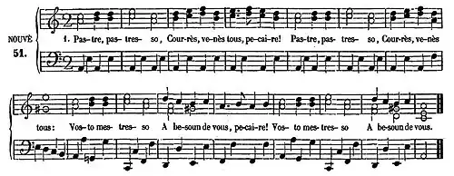 - ↑ Le camba me fai mau, Pastres e Pastressas selon la norme classique