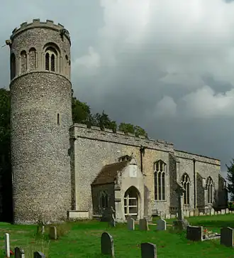 Église St Nicholas de Little Saxham avec sa tour ronde