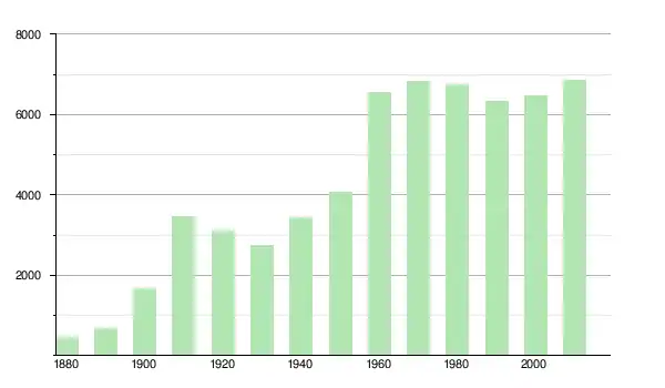 | 1980 | 6 732 | ▼ −1,43 % | |