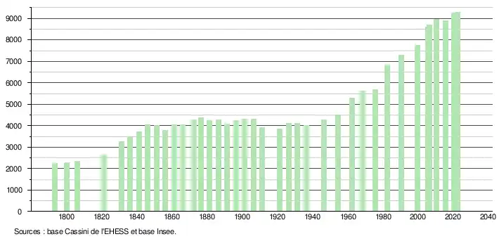 - ↑ Population municipale de référence en vigueur au 1er janvier 2025, millésimée 2022, définie dans les limites territoriales en vigueur au 1er janvier 2024, date de référence statistique : 1er janvier 2022.