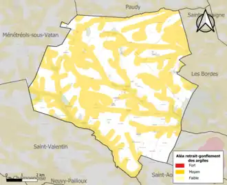 Le retrait-gonflement des sols argileux est susceptible d'engendrer des dommages importants aux bâtiments en cas d’alternance de périodes de sécheresse et de pluie. 54,4 % de la superficie communale est en aléa moyen ou fort (84,7 % au niveau départemental et 48,5 % au niveau national). Sur les 59 bâtiments dénombrés sur la commune en 2019, 24 sont en aléa moyen ou fort, soit 41 %, à comparer aux 86 % au niveau départemental et 54 % au niveau national. Une cartographie de l'exposition du territoire national au retrait gonflement des sols argileux est disponible sur le site du BRGM[19],[20].