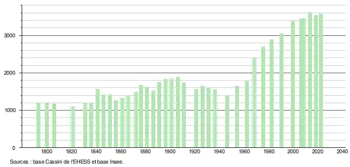 - ↑ Fiches Insee - Populations de référence de la commune pour les années 2006, 2007, 2008, 2009, 2010, 2011, 2012, 2013, 2014, 2015, 2016, 2017, 2018, 2019, 2020, 2021 et 2022.