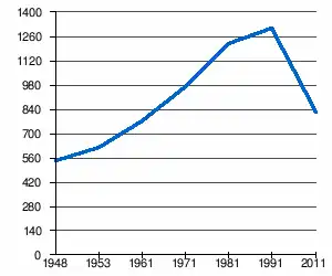 - 1 2 (sq) « Évolution de la population 1948-2011 », sur pop-stat.mashke.org (consulté le ).
