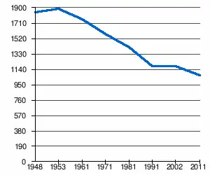 - 1 2 (sr + en) « Livre 20 : Vue d'ensemble comparative de la population en 1948, 1953, 1961, 1971, 1981, 1991, 2002 et 2011, données par localités) » [PDF], pages du recensement de 2011 en Serbie - Institut de statistique de la république de Serbie, (consulté le )