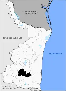 Elle est limitrophe au nord de la municipalité de Casas, à l'ouest de celles de Victoria et de Jaumave, et au sud de celles de Gómez Farías, de Xicoténcatl et de González[5].