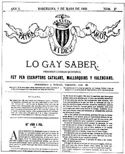 Lo Gay Saber est une revue littéraire catalane fondée à Barcelone en 1868 par Francesc Pelagi Briz[1]. D'après sa première page, elle prétendait être un journal « fait par des écrivains catalans, majorquins et valencians », mettant en avant la défense de la langue catalane[1]
