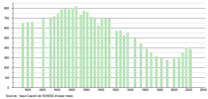 - ↑ Fiches Insee - Populations de référence de la commune pour les années 2006, 2007, 2008, 2009, 2010, 2011, 2012, 2013, 2014, 2015, 2016, 2017, 2018, 2019, 2020, 2021 et 2022.