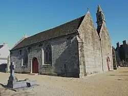 - L'église Saint-Éguiner (XVIe – XVIIe siècles) est datée de 1566 (ou 1651) ; elle est à double nef, la seconde nef ayant été rajoutée pour faire face à l'affluence les jours de Pardon, ici celui de la Saint-Jean ; les deux nefs sont séparées par 4 arcades pénétrant directement dans des piliers cylindriques. une inscription située à l'entrée du chœur indique « Dimanche 1er jour de juillet l'an (1577) fut dédiée ceste église, était lors Yven Gouverneur ». Le clocher, de style Beaumanoir date de 1631, les fonts baptismaux de 1641, la chaire à prêcher de 1688, le porche de 1699 et la sacristie de 1718. Les deux retables représentent l'un le Couronnement de la Vierge, l'autre Louis de Gonzague[14].